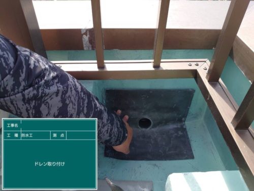 排水(ドレン)は防水工事とセットで必ず施工されており、床の勾配と排水機能が正常な状態で初めて防水工事が機能します。
