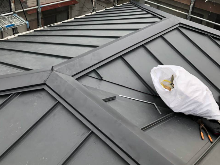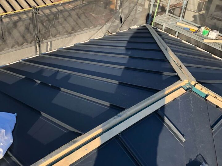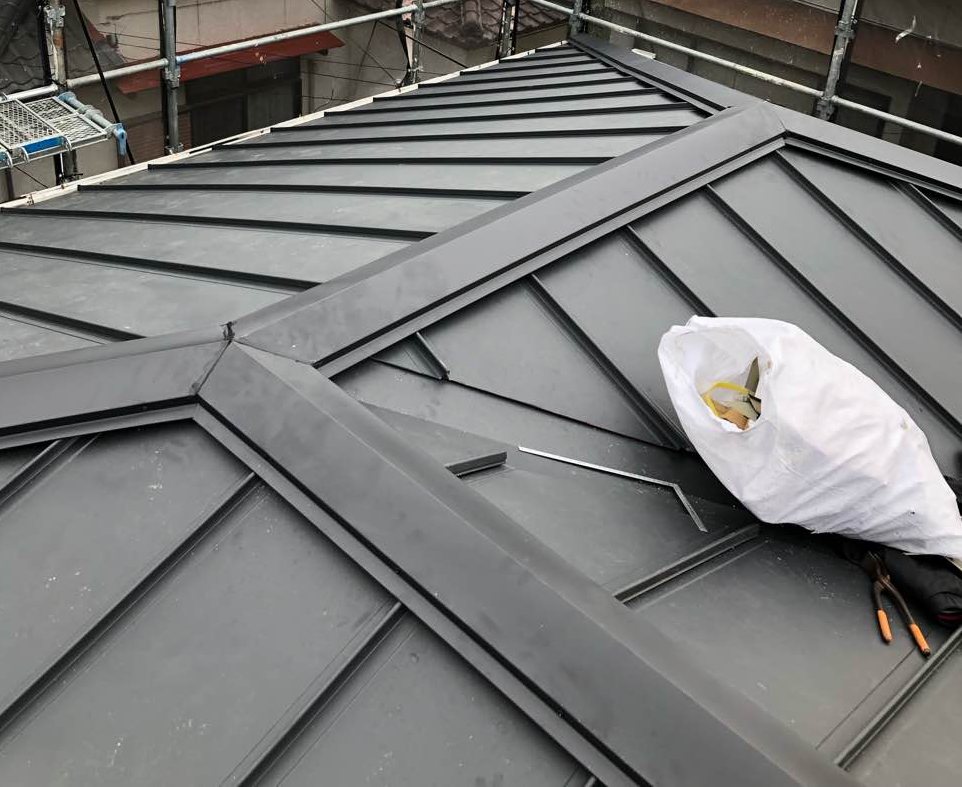 もともと立派な瓦屋根でしたが【立平板金】という軽量の屋根材に葺き替えさせていただきました。
