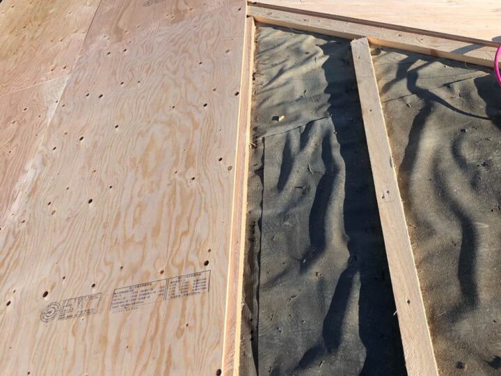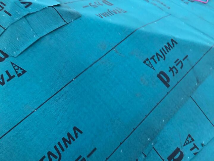 屋根の下の野地板を貼っていきます。防水シート貼り