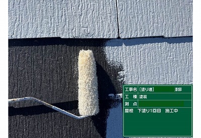屋根下塗り1回目です。
