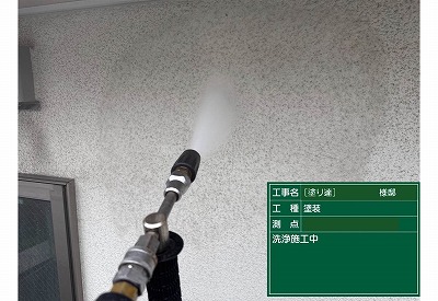 外壁も屋根同様に塗装をする前に汚れなどきれいに洗い流していきます。
