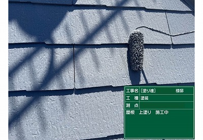 屋根の上塗り1回目をしております。