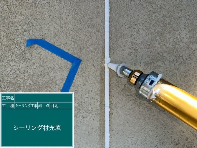 新しくシール材を充填することで、雨水等の侵入を防ぎ家の微振動によるボードとボードの衝突を防ぎます。