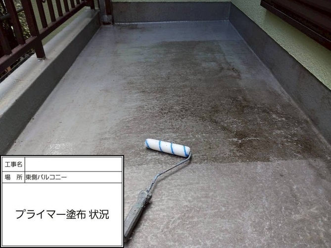 下地の微細な汚れや粉化を抑え、防水材がしっかり密着できる状態に整えるための重要な下処理工程です。