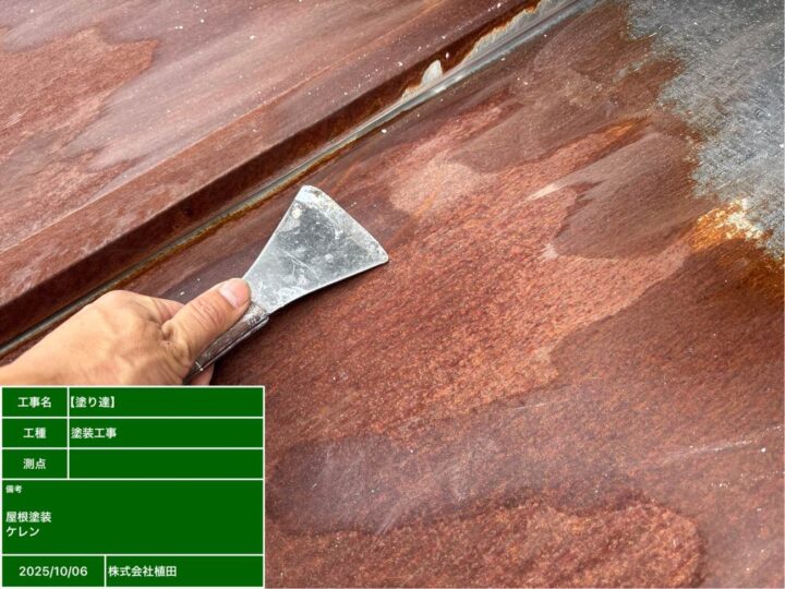 ケレン作業では、サビや旧塗膜を丁寧に除去し、塗料の密着性を高めるため下地を整えます。