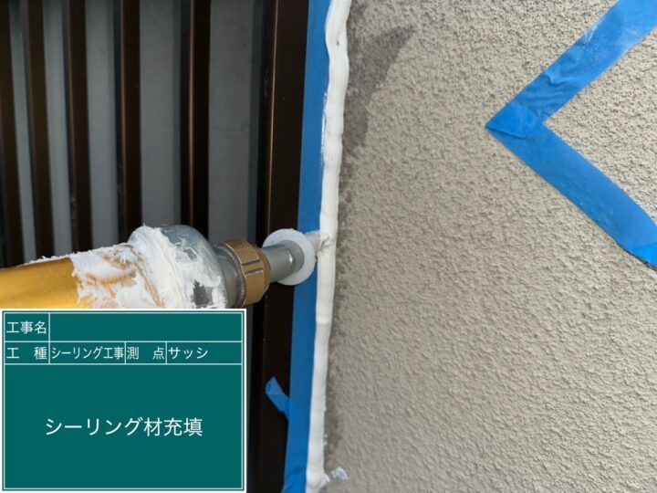 新しくシール材を充填することで、雨水等の侵入を防ぎ家の微振動によるボードとボードの衝突を防ぎます。