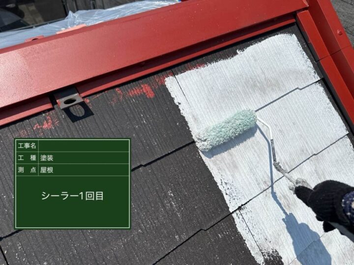 屋根塗装におけるシーラー1回目は、下地への吸い込みを抑え、上塗り塗料の密着性を高めるために行います。