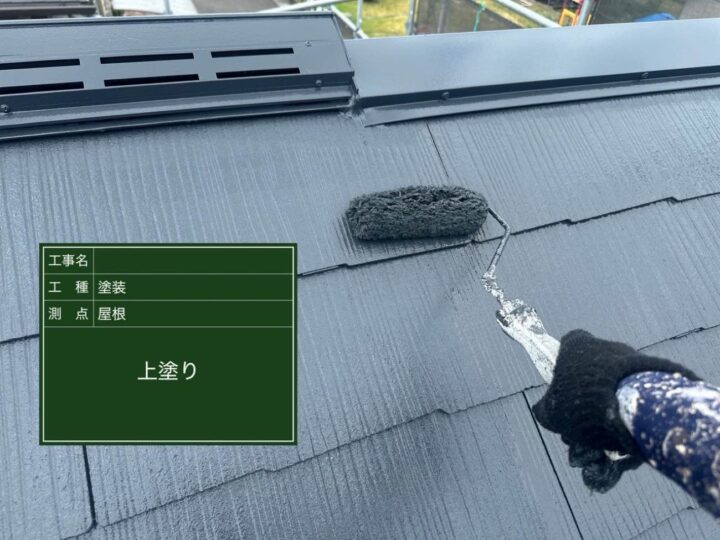 屋根の上塗りは、最終仕上げとして美観を整え、紫外線や雨風から屋根材を保護するために行います。