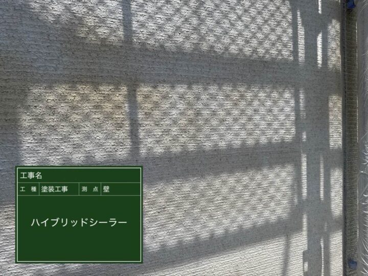 (ハイブリッドシーラー)は、下地への密着性を高め、吸い込みを抑えて上塗りの仕上がりと耐久性を向上させるために行います。